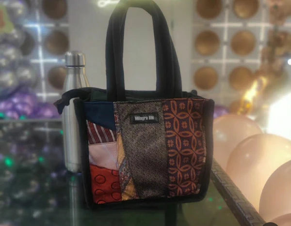 Handmade Lunch Bag for Office & College Faux Leather Tiffin Bag with Zip Closure