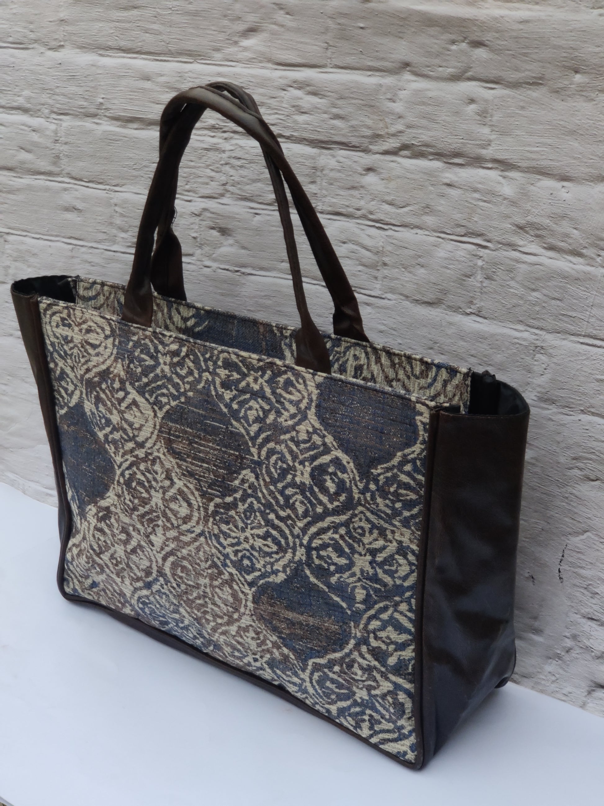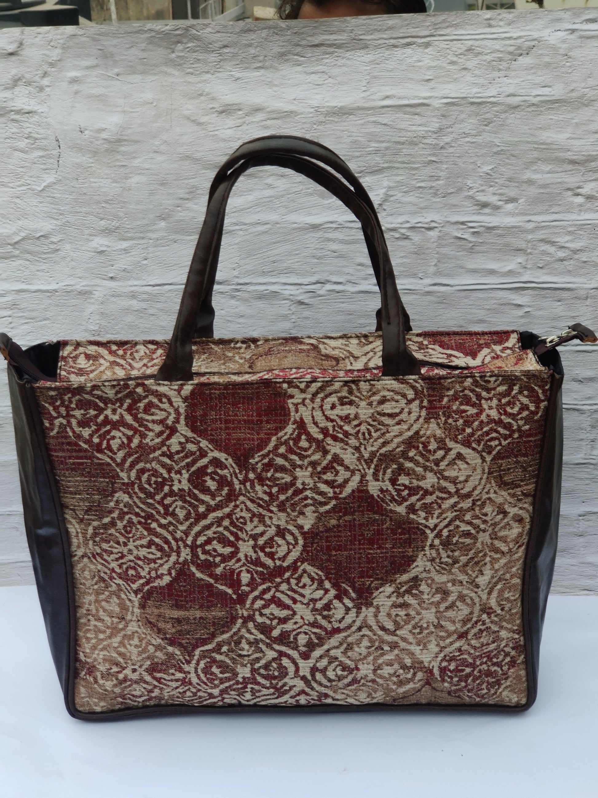 Jaquard and Leather Tote Bags : are a tribute to Indian Handlooms and artisans.