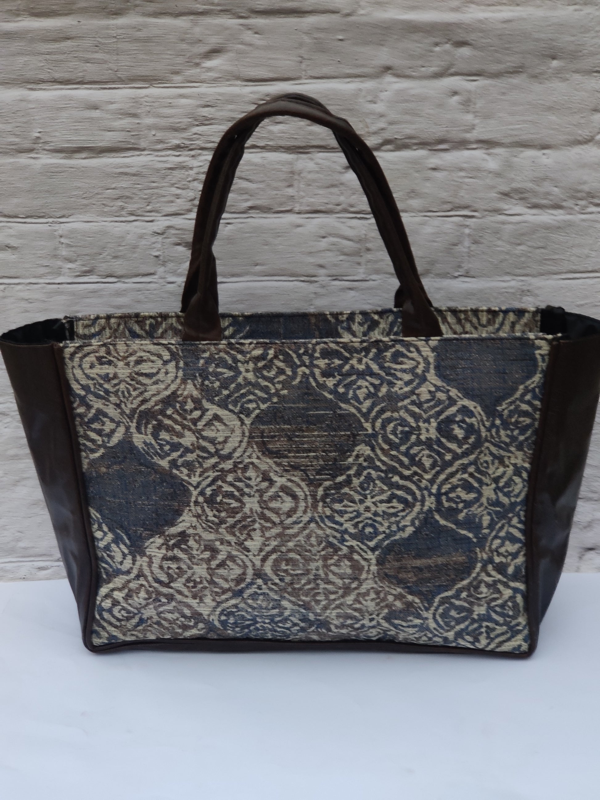 Jaquard and Leather Tote Bags Brown